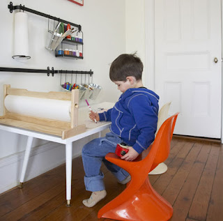 1) Nas duas imagens seguintes mostro que, com uma simples barra você pode deixar tudo à mão para seu pequeno fazer suas artes ou a tarefa de casa por exemplo. Fica clean, moderno e fácil de fazer. Repare que os "apetrechos da arte" foram pendurados em baldinhos....
